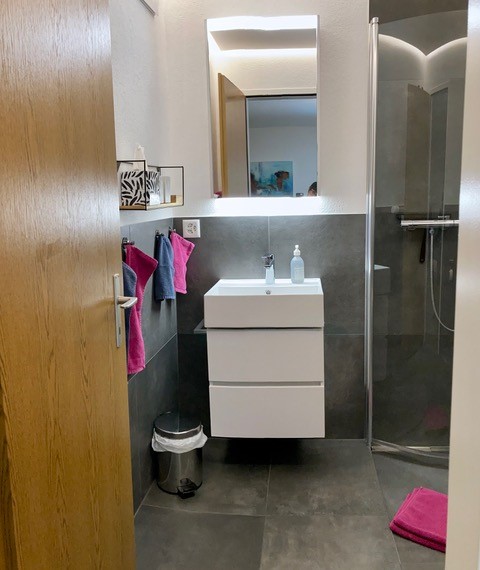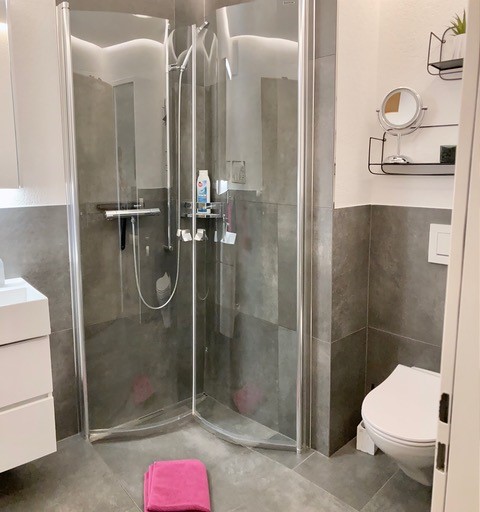 Sofa und Doppelbett, Schrank, Dusche/WC